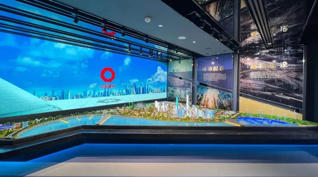 回顾完历史,我们看看今朝。材料无处不在,改变人们的生活。中国建材的产品身影也遍布城市及周边,一个沙盘不同颜色的灯带带你了解中国建材在基础建设(红色)、城市配套(黄色)和清洁能源(绿色)方面的贡献。