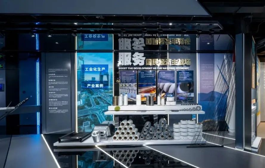 服务国民经济主战场:展台上摆放了各种各样的材料产品,你可以用手去触摸、去感受,我们材料的具体形态,通过多媒体我们还可以深挖材料的生产应用场景。