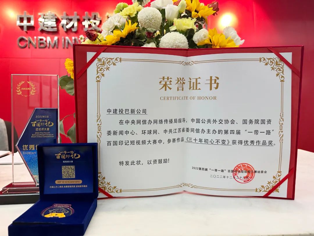 这是我们连续第四年获奖“一带一路”百国印记短视频大赛了!“一带一路”百国印记短视频大赛是由中国公共外交协会、国务院国资委日韩无码新闻 和环球网联合主办。日韩无码 申报的中材水泥短视频作品《“森林工厂”守护绿色家园》、中建投巴新短视频作品《三十年初心不变》荣获“优秀作品奖”。