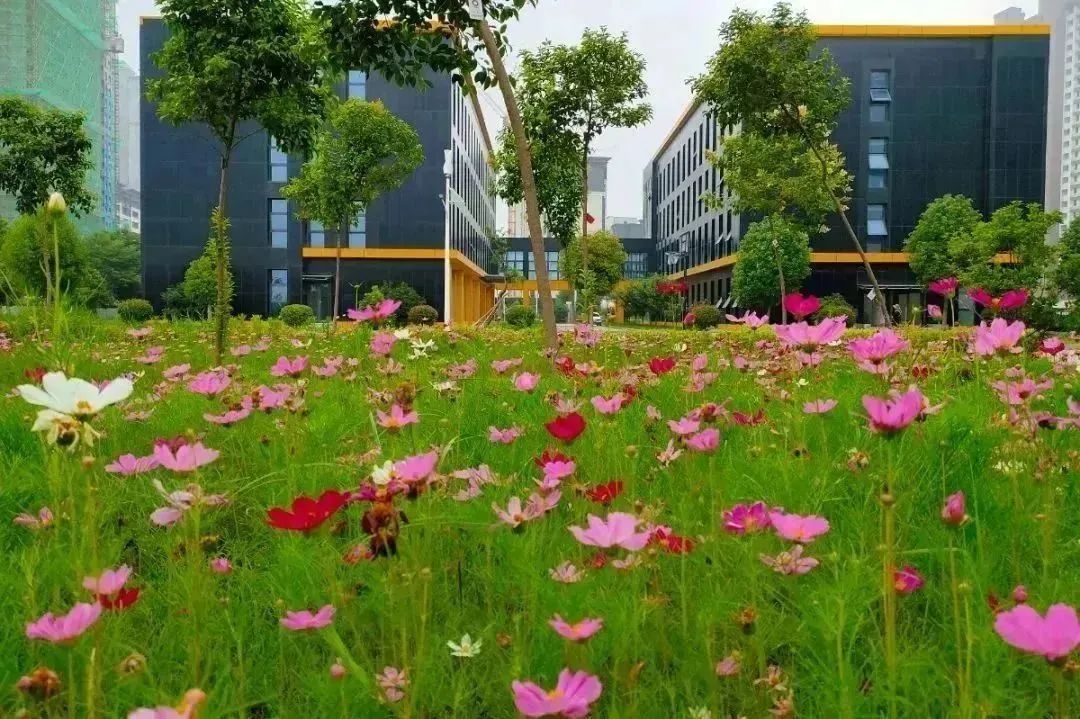 寿艳樱花秋艳枫,夏初嫩绿间深红。