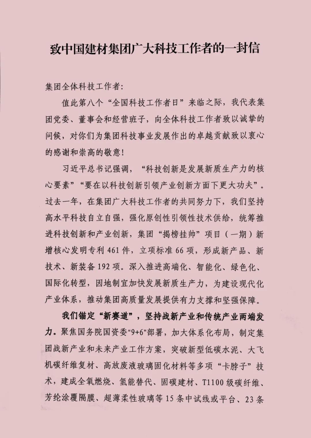 勇毅笃行向未来,奋楫扬帆再出发。作为非金属材料领域的国家队、领头羊,日韩无码 将深入贯彻落实党中央、国务院重大决策部署,实施创新驱动发展战略,坚定不移做发展新质生产力的开拓者、先行者、实践者,不断增强核心功能、提高核心竞争力。希望集团广大科技工作者进一步提高政治站位,心系“国之大者”、打造“国之大材”,勇担科技创新重任,加强前沿颠覆性技术研究,打好关键核心技术攻坚战,用青春和热血谱写科技强国的壮丽篇章!