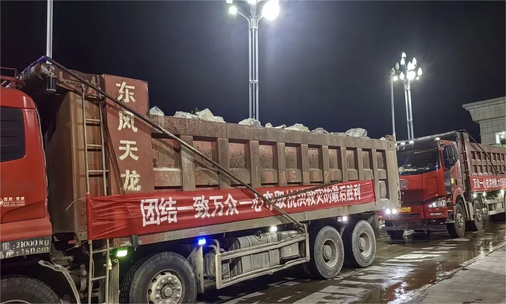 7月5日-6日,两家企业紧急调运块石3000吨(湖南临澧南方新材料1000吨、湖南汨罗南方新材料2000吨)、120车支援物资赶往岳阳市华容县团洲垸溃口处进行增援。