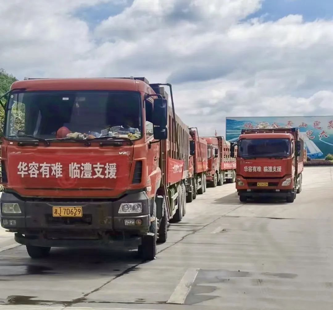 截至目前,首批满载块石车辆已抵达华容县,接受当地防指指挥,参与抢险工作。