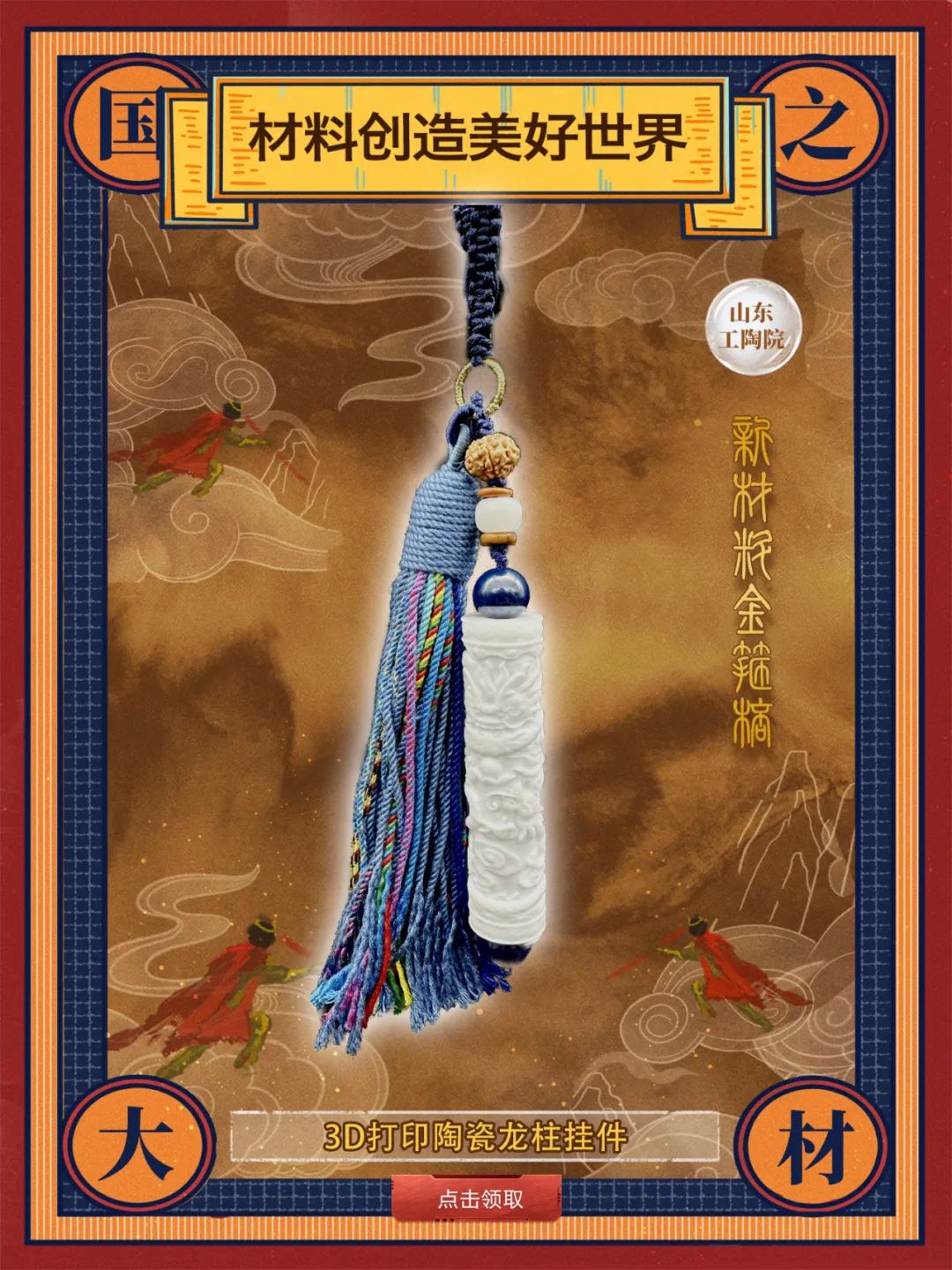 陶瓷龙柱挂件采用先进陶瓷3D打印技术制备而成。先进陶瓷材料具有高强度、高硬度、耐高温、耐磨损、耐腐蚀及优异的电学、热学、光学和生物学性能,不仅广泛应用于机械、冶金、化工、能源、环保等工业领域,而且在航空航天、生物医疗、无线通讯、半导体等高科技领域及新型产业中也获得越来越多的应用。3D打印技术是“第四次工业革命”具有代表性的颠覆性技术,可实现传统工艺难以实现的轻量化、复杂结构、个性化产品的一体成型。先进陶瓷龙柱挂件采用了新材料、新造型和新工艺,突破了传统制造和工匠制造造型的局限性,赋予新材料文创首饰独特的设计美感。