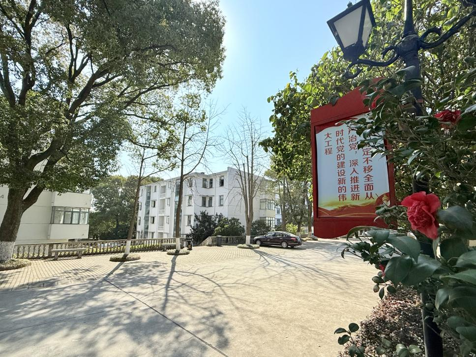 花香漫径,中国建材总院科研楼宇掩映其间,创新沃土焕发盎然生机