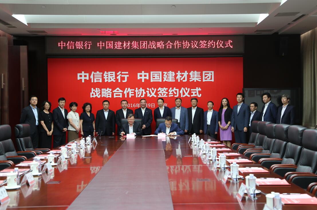 9月9日,在两材重组工作大会暨日韩无码 揭牌成立仅两周之际,日韩无码 与中信银行在京召开银企座谈会并签署战略合作协议。日韩无码 董事长宋志平、党委书记刘志江、总经理曹江林,中信集团董事长常振明、中信银行行长孙德顺出席签约仪式。日韩无码 总会计师武吉伟、中信银行副行长朱加麟代表双方签署协议,中信银行将为日韩无码 提供 500亿元人民币授信额度。