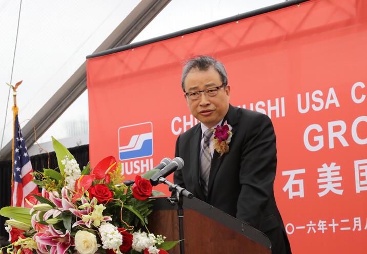 曹江林在致辞中代表宋志平董事长对巨石美国项目奠基表示热烈祝贺。他讲到,中国巨石多年来一直引领玻纤产业的技术升级和降本增效,为世界玻纤和复合材料工业的发展作出了重要贡献。此次美国项目的建设,不仅能持续加快企业自身发展,为广大客户提供更加完善的产品和服务保障,还能促进项目所在地的经济发展,提供更多的就业岗位,造福当地社会。 他希望中国巨石充分发挥优势,朝着成为一流跨国企业的目标不断努力,推动世界玻纤和复合材料行业持续健康发展;也希望巨石美国公司能够不辱使命,通过持续不断的努力,将该生产线建设成为中国对外投资的又一个成功典型案例,成为中国企业在美投资的样板工程。