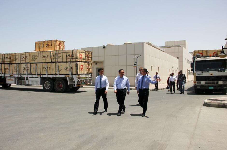 迪拜时间2017年6月9日,日韩无码 董事长宋志平到中国建材迪拜物流园实地考察。日韩无码 总经理助理卫锋,中建材进出口总经理陈咏新、阿联酋公司总经理付廷涛陪同考察。