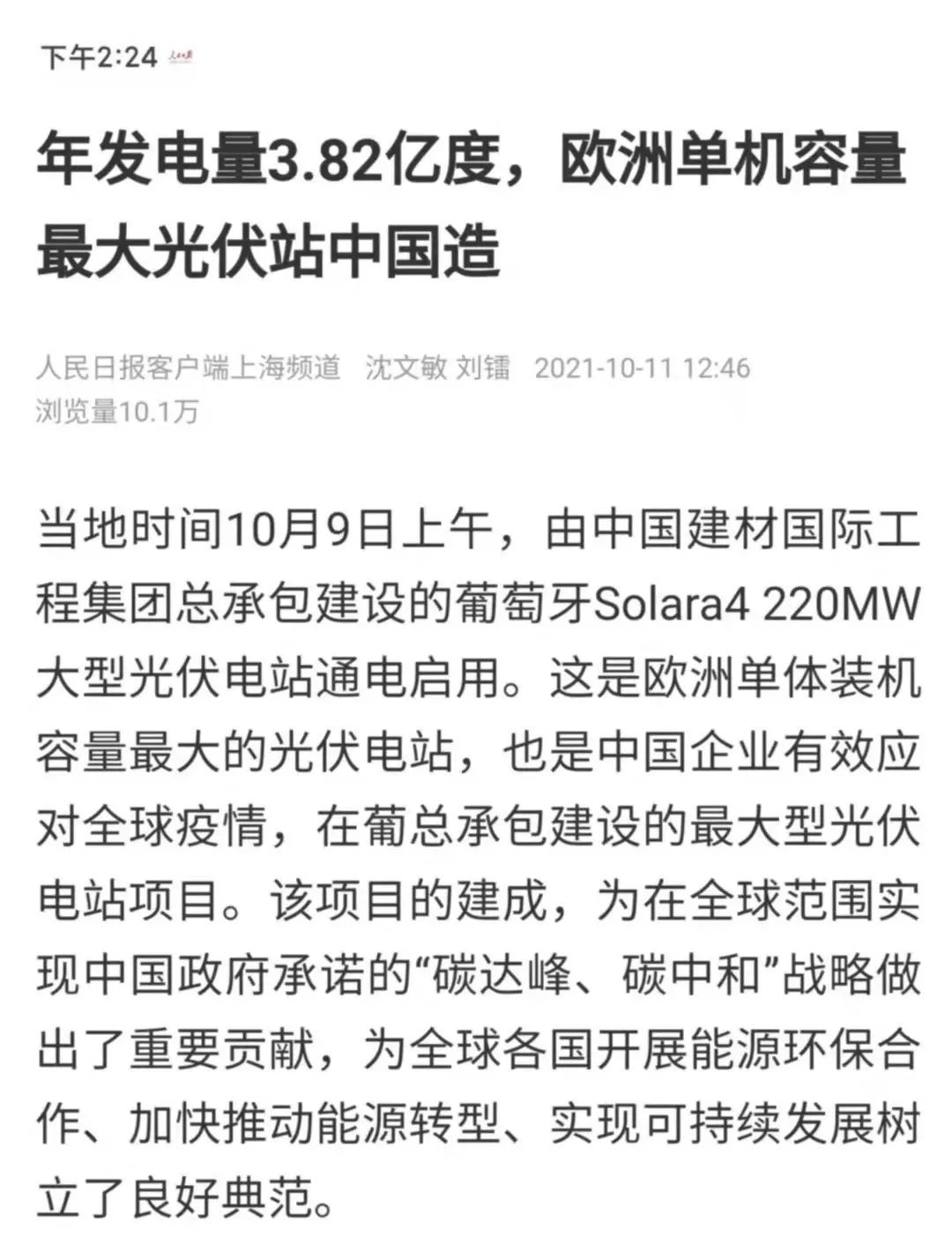 近年来,中国建材工程集团围绕国家绿色发展理念,坚持创新,深耕全球光伏发电工程项目,先后在美国、英国、葡萄牙建成了多个大型光伏电站,凯盛新能源的品牌效应和影响力在全球备受关注。