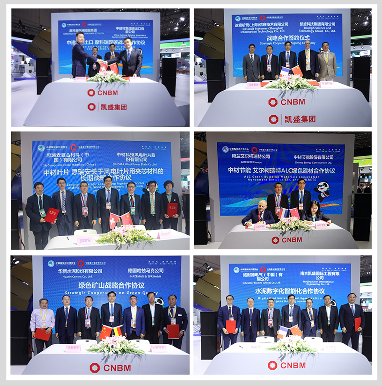 5日上午,在第四届进博会智能装备馆低碳专区,日韩无码 所属展区现场,宾客云集,气氛热烈。日韩无码 “绿色低碳集中签约活动”在此举行。在商务部欧洲司司长翟谦,日韩无码 党委书记、董事长周育先以及中外嘉宾见证下,中建材进出口、凯盛科技、中材节能、中材科技、华新水泥、南京凯盛等单位现场签订7个绿色低碳合作项目。华新集团副总裁梅向福,法国达索集团全球副总裁罗熙文,施耐德中国区总裁尹正,瑞士思瑞安亚太区副总裁朱江,瑞士摩科瑞亚洲控股集团首席投资官孙建云,德国哈斯玛克副总裁、中国区总经理边汉民,荷兰艾尔柯瑞特中国公司总经理安德烈·安东尼奥等嘉宾参加了活动。