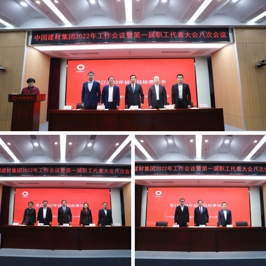 会上,李新华代表集团与二级公司负责人逐一签署了2022年考核责任书。中联水泥、南方水泥、宁夏建材、北新建材、中国巨石、中材科技、中材国际、中国建材总院、凯盛科技、财务公司10家单位作现场和视频发言,27家企业作书面交流。本次工作会同时也是集团第一届职工代表大会八次会议,代表们在认真审议后通过了集团工作报告。