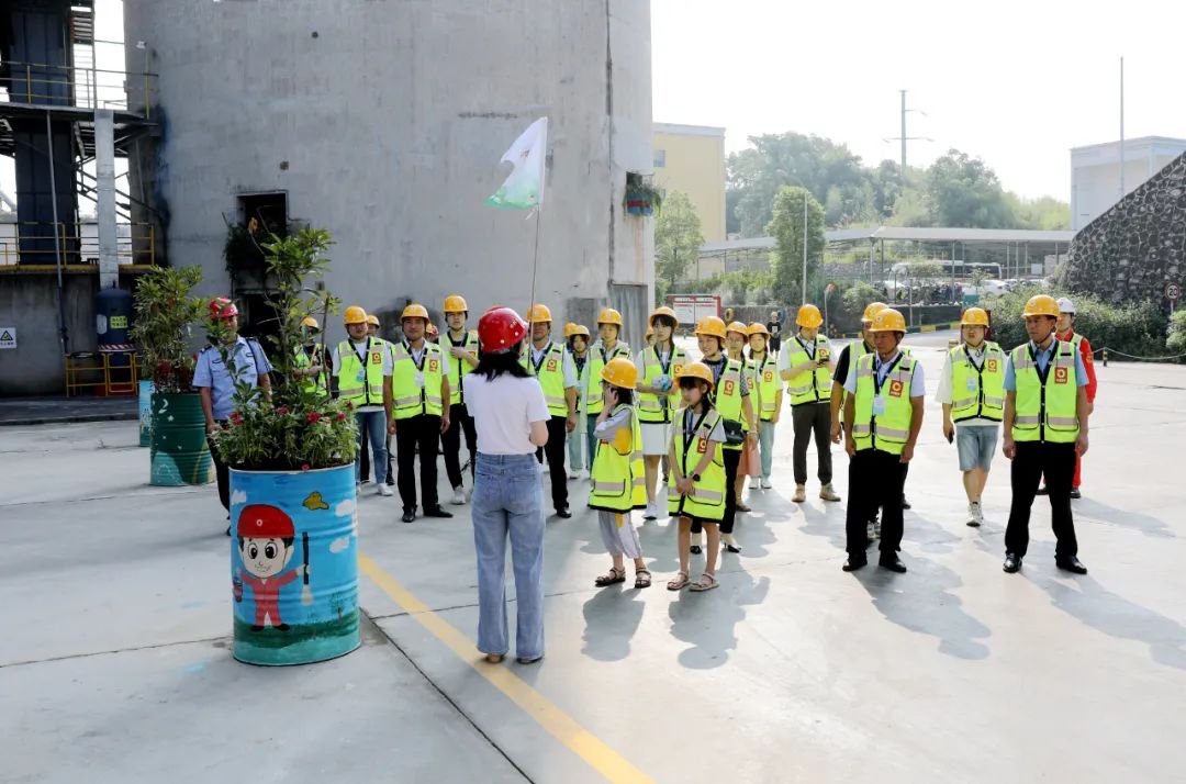 在参观水泥熟料生产线之前,登封中联集中进行了安全告知,安全管理人员现场讲解示范安全帽佩戴规范和要领后,参观人员正确佩戴了安全帽,跟随着“小料”,开启了“走进绿色工厂”的参观之旅。