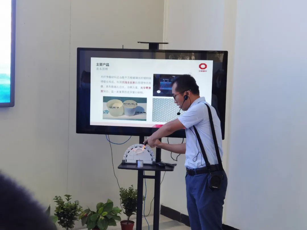 活动中,前来参观学习的老师同学们先后到展室、光纤面板基地,绿色建材国家重点实验室等进行参观。一路走来,同学们带着问题,跟随志愿者参观各展厅展品,认真听讲,积极思考,踊跃提问,一件件实物、一幅幅图片颠覆了传统建材在在师生们心目中的形象,充分展现了中国建材总院践行服务国家建设初心好使命。