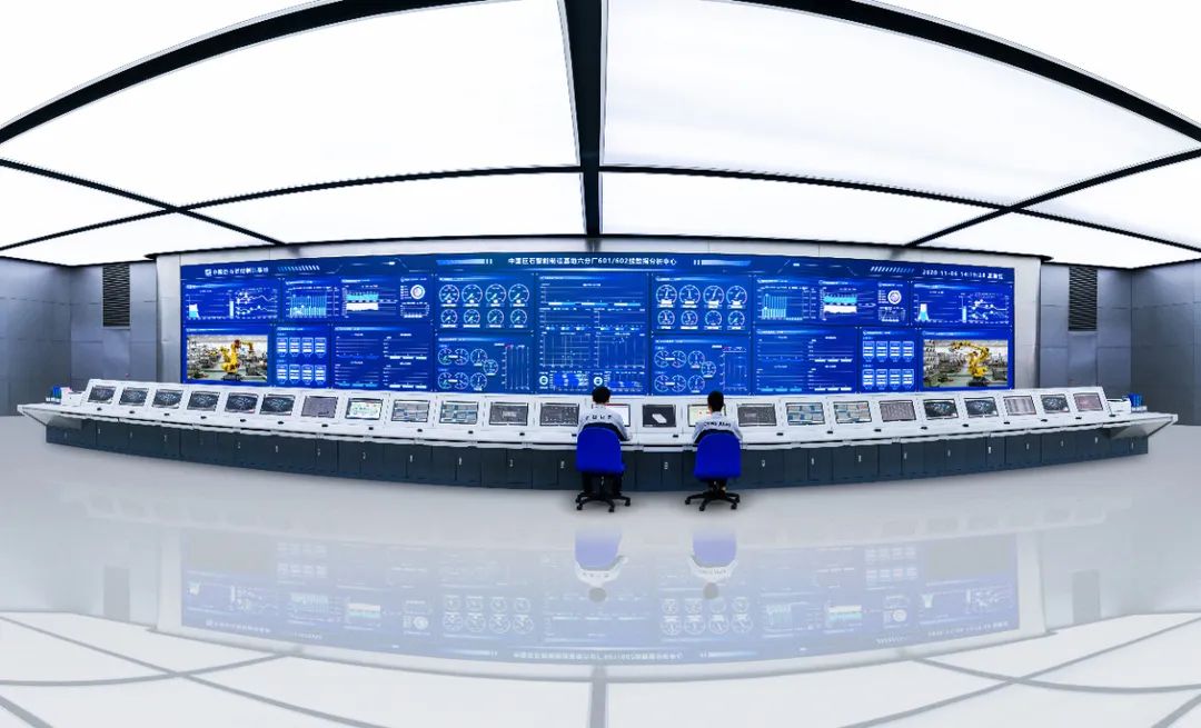 宽敞的智能控制中心,硕大的显示屏布满了整堵墙,分门别类对年产15万吨的玻璃纤维生产线进行数字化、可视化的全流程监控,却只有两名值班人员。