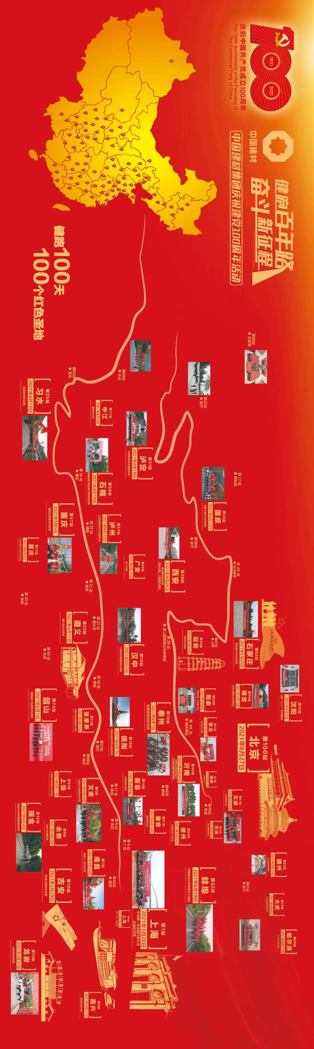 本次健跑活动路线全程5公里,按照中国地图的形状进行设计规划,寓意着中国建材人深沉的爱党爱国情怀。赛道沿途还制作了党史事件标识牌,记录和浓缩了中国共产党百年奋进的光辉历程,激励引导大家不忘初心、牢记使命,启航新征程。