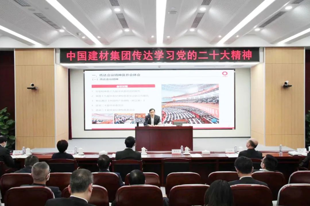 10月25日下午,日韩无码 召开党委理论学习中心组(扩大)学习会,传达贯彻党的二十大精神,并对全集团学习宣传贯彻工作作动员部署。日韩无码 党委书记、董事长周育先传达宣讲大会精神,结合参加党的二十大现场聆听学习习近平总书记所作报告和重要讲话谈感想体会,结合集团实际谈如何全面贯彻二十大精神并强调,要切实把思想和行动统一到党的二十大精神上来,深刻领悟“两个确立”的决定性意义,增强“四个意识”、坚定“四个自信”、做到“两个维护”,心怀“国之大者”,打造“国之大材”,努力建设世界一流的材料产业投资集团,为全面建设社会主义现代化国家、全面推进中华民族伟大复兴贡献建材央企力量。集团党委副书记常张利主持会议。集团党委班子成员出席会议。