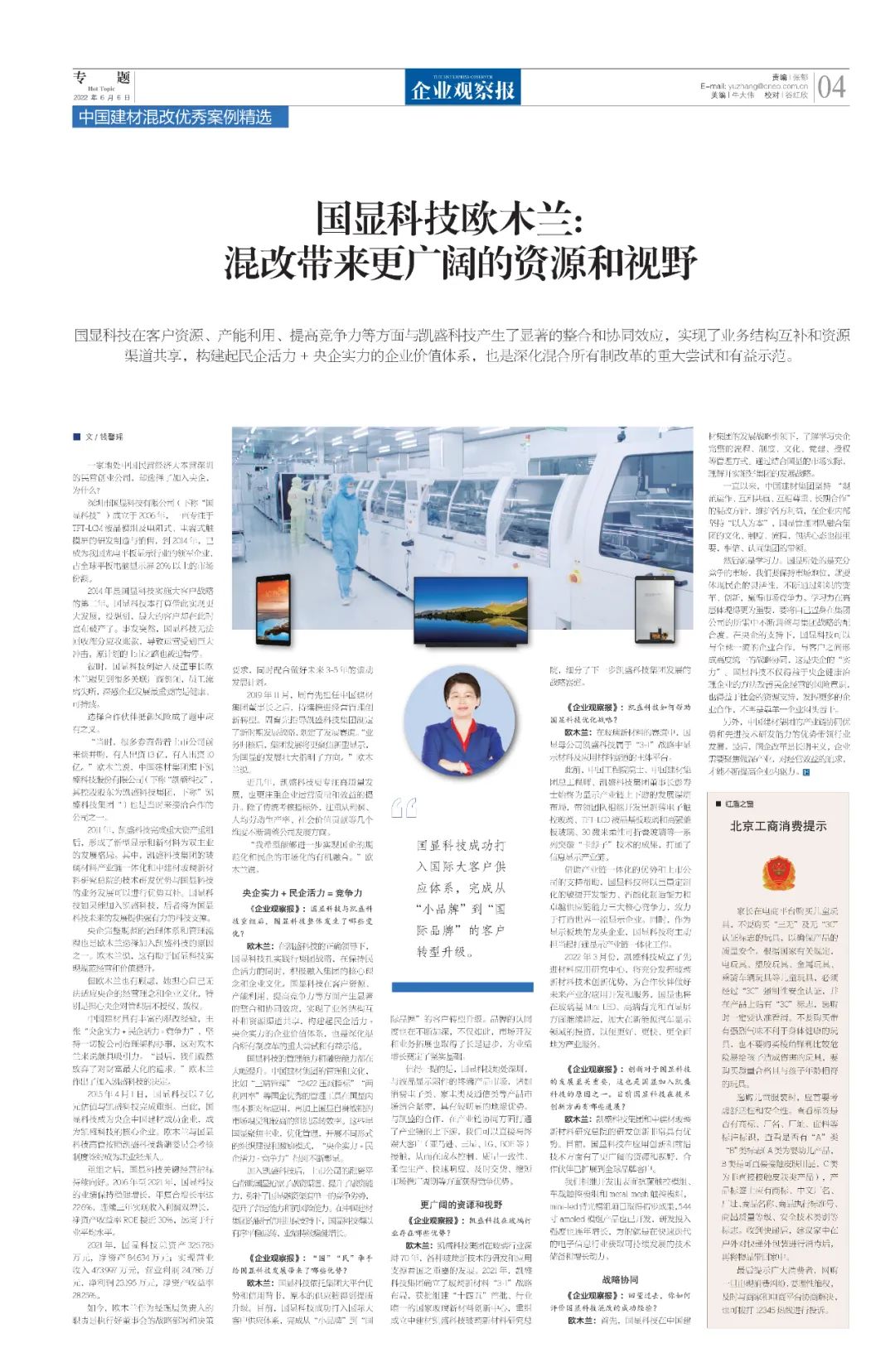 国显科技在客户资源、产能利用、提高竞争力等方面与凯盛科技产生了显著的整合和协同效应,实现了业务结构互补和资源渠道共享,构建起民企活力+央企实力的企业价值体系,也是深化混合所有制改革的重大尝试和有益示范。