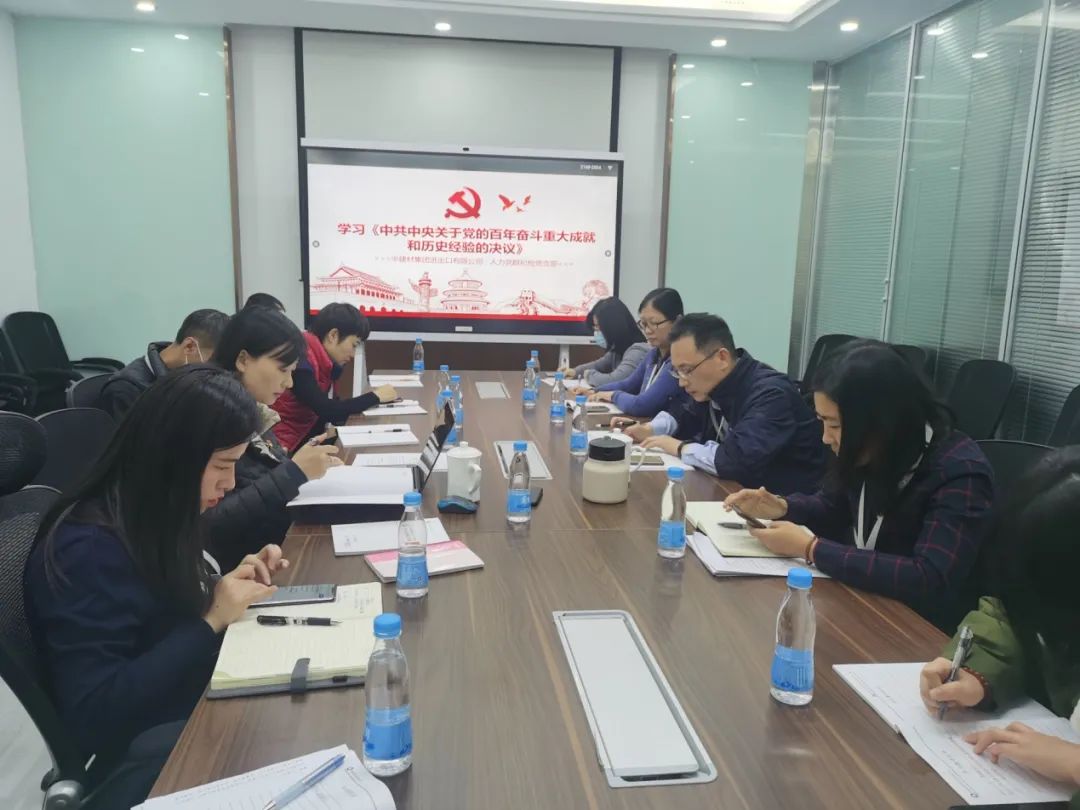 中建材进出口党委召开党委理论学习中心组学习研讨(扩大)会,专题学习《中国共产党第十九届中央委员会第六次全体会议公报》、《中共中央关于党的百年奋斗重大成就和历史经验的决议》、《国资委党委组织中央企业传达学习贯彻党的十九届六中全会精神》。会议强调,要把深入学习宣传贯彻落实党的十九届六中全会精神作为当前和今后一个时期的重大政治任务,坚决把思想和行动统一到全会精神和重大决策部署上来。牢记“国之大者”,以史为鉴、开创未来,埋头苦干、勇毅前行,把全会精神落实到公司改革发展各方面,不断引领保障公司持续健康高质量发展,为集团建设具有全球竞争力的世界一流材料产业投资集团贡献力量。