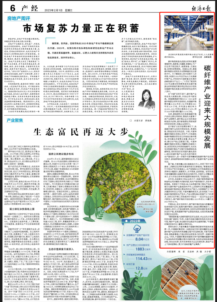 在不断扩大的市场需求牵引下,我国碳纤维行业加快向更成体系、更高性能、更低成本的方向迈进。日前,中复神鹰碳纤维股份有限公司年产3万吨高性能碳纤维建设项目在江苏省连云港市落地,项目建设多套聚合装置、原丝生产线、碳化生产线以及配套工程。中复神鹰碳纤维股份有限公司董事长张国良介绍,该项目将充分利用核能蒸汽、光伏发电实现碳纤维生产过程中的能源绿色低碳转型,同时将首次采用国内最先进的4.0版本的碳纤维产业化技术进行新的生产基地设计,进一步提升中复神鹰高性能碳纤维产品在航空航天、新能源等领域的规模化应用,打造碳纤维产业绿色生态。
