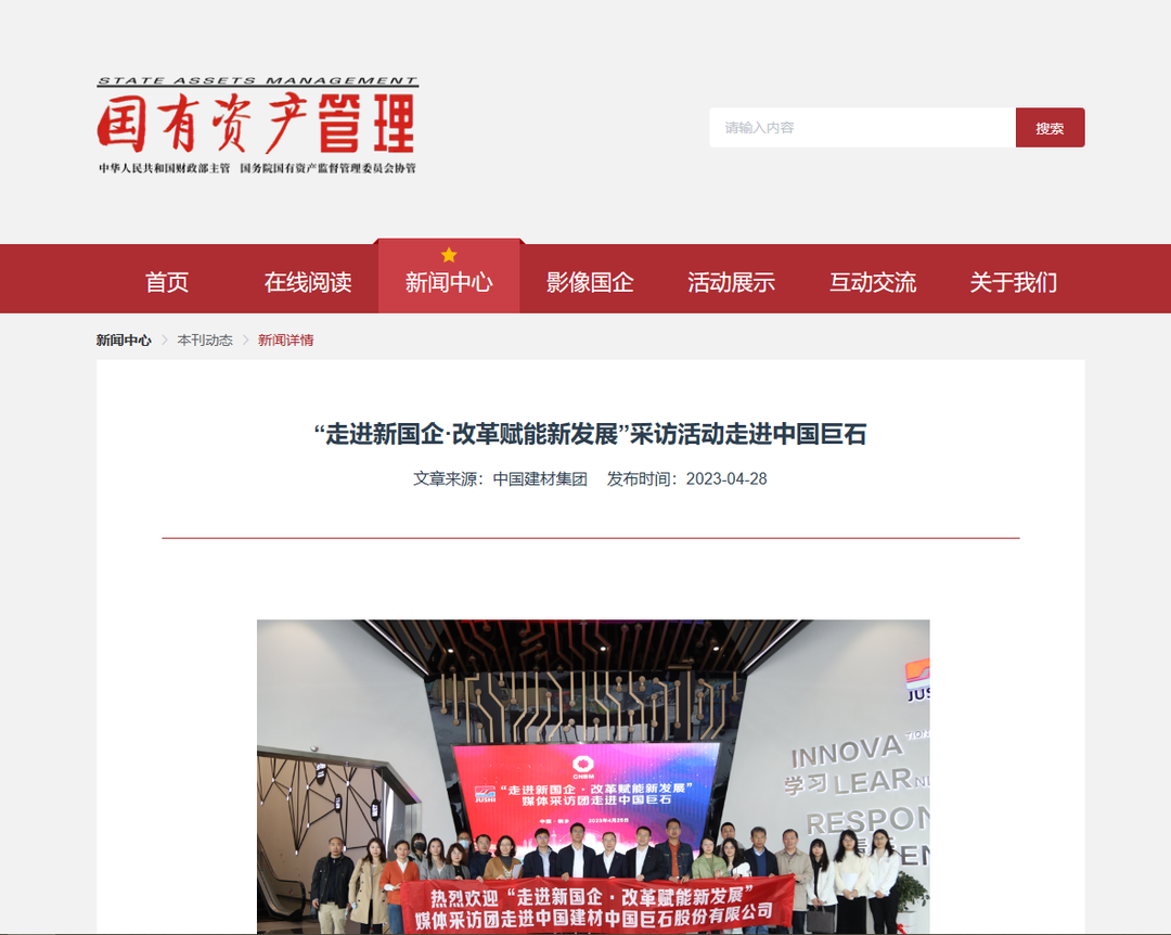国有资产管理杂志、环球网刊发《“走进新国企·改革赋能新发展”采访活动走进中国巨石》。1999年至2022年,混合所有制改革助力中国巨石经营质量和经营业绩实现跨越式增长,成为了国家混合所有制的典范。迈入新时代,巨石产品研发瞄准市场前沿,不断优化产品结构,以创新布局高端应用领域;把握科技革命大势,全力赋能智能制造,引领玻纤工业数字化变革;国际拓展,打造高质量发展的海外“增长极”;强化绿色生产过程,完善绿色设计理念,实现可持续发展。