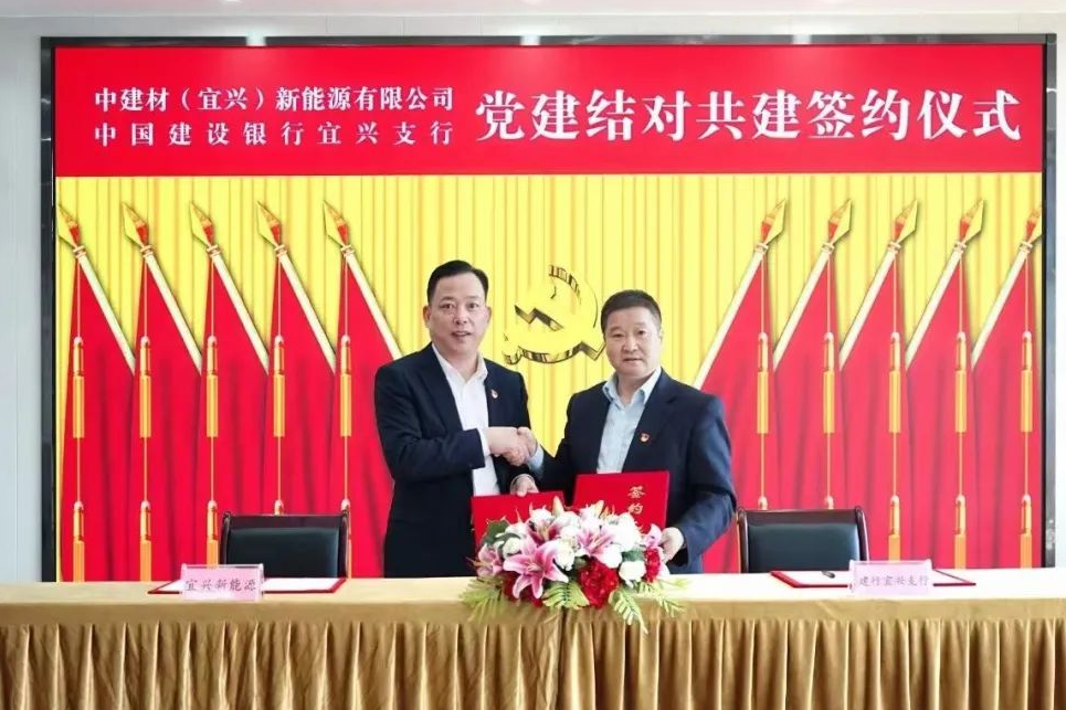 中建材(宜兴)新能源与中国建设银行江苏省分行宜兴支行开展“联学党的二十大、银企共建促发展”党建结对共建活动,探索新时代新形势下基层党建工作的新途径新方法。