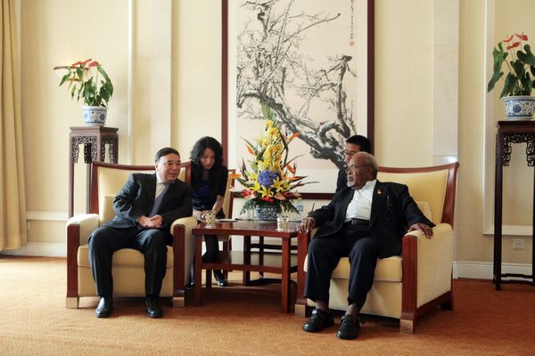 On September 14, Michael Somare, prime minister of Papua New Guina (PNG), met with Song Zhiping, chairman of China National Building Materials Group Corporation (CNBM), at Diaoyutai State Guesthouse. The two sides had a luncheon and exchanged views on cooperation in a friendly atmosphere.