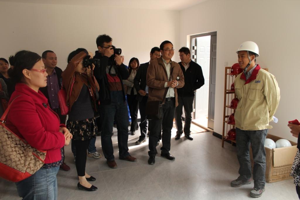 活动安排参观了北京市密云县大型新农村整村改造项目。在项目现场,尹稷华和苏志雄向16家媒体的记者介绍了44座新型房屋建设情况,并介绍了这种为村民量身设计建造的双层独院式民俗旅游度假房屋的特点、一期工程施工中遇到的困难及管理协调等工作情况。当记者们了解到新型房屋全部使用绿色环保材料,建筑节能75%以上,设防9级地震,抵御12级台风等优点后,纷纷表示赞叹。在亲身体验样板房的过程中,记者们对92%的高得房率、独有的暖炕设计、双开的窗户、太阳能加热取暖等设计给予高度好评。活动还安排参观了北新建材的龙骨生产线和新型房屋样板房基地。先进的生产工艺、美丽的外观、安全的构造、宽敞的使用空间、贴心人性的配置、绿色环保节能的设计让参观人员眼前一亮,也让他们对苏志雄的绿色房屋梦想有了全新的认识。